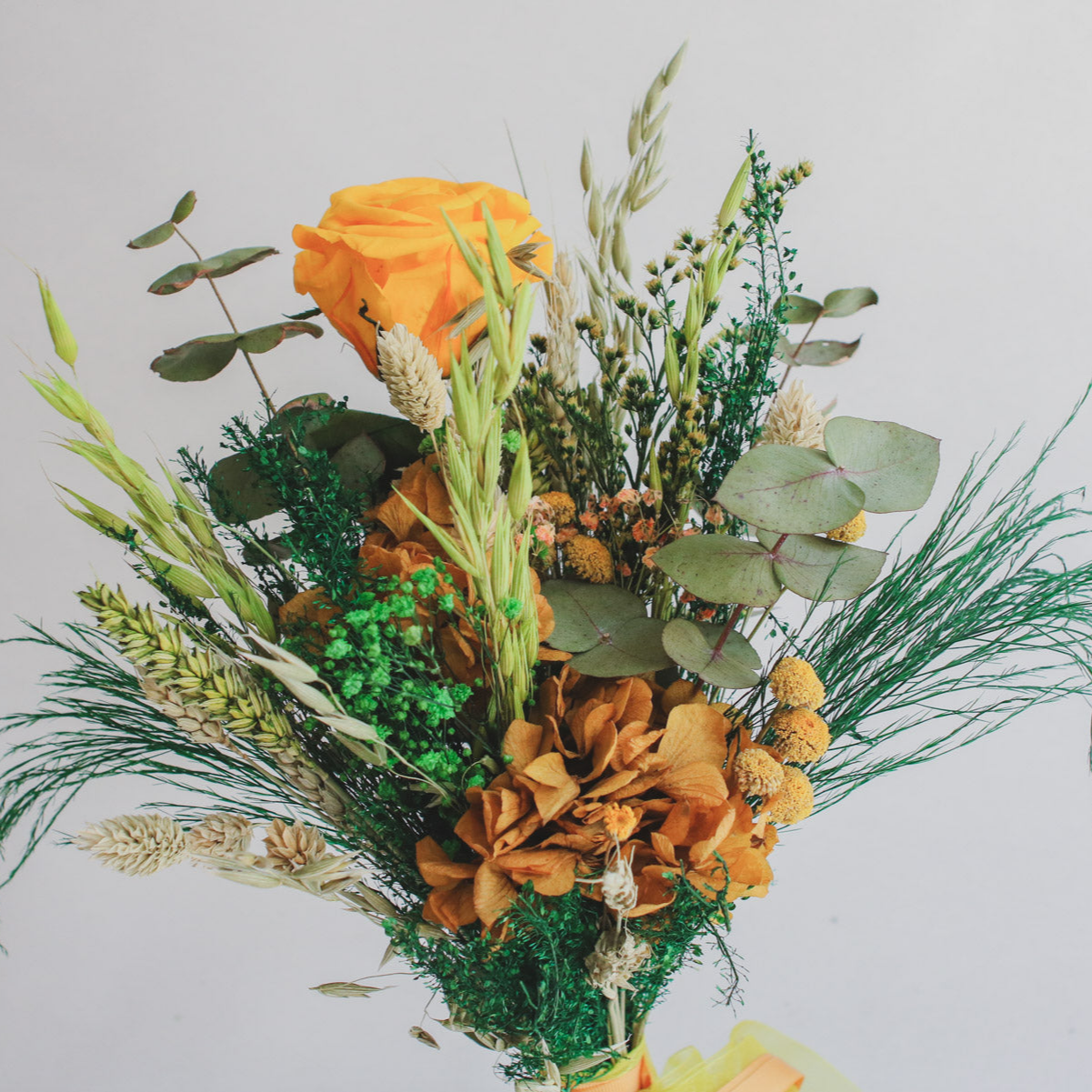 Llévate a casa la belleza que no se marchita con nuestros ramos de flor seca preservada, diseñados para durar y conservar todo su encanto durante años.